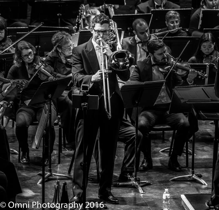 The Janacek “Sinfonietta” that led post-intermission was elegant and fulfilling, but it was the world premiere of Robert Tindle’s “At Sixty Miles an Hour” that captured the hearts and minds of the audience, the orchestra members, and bass trombonist Will Baker, this year’s SEISO Artist-In-Residence.